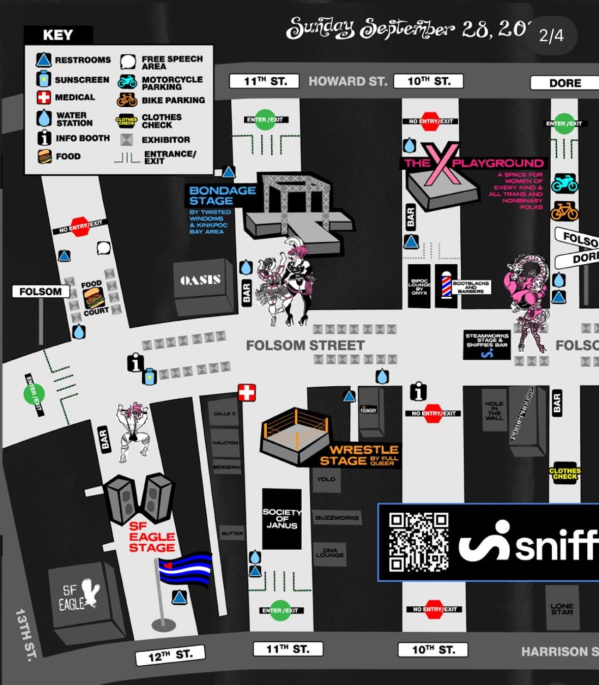 You might not be the target audience for many of these parties. It’s our space – it’s great you feel safe here, too – but we kinda built this. There are several lesbian and straight women who are a big part of the SF community out here and join us for many of the parties as patrons and producers and talent. And they know the events that are more play-oriented aren’t really for them and sure they could go into a back room and look around, but turning someone’s sexuality into a tourist attraction is tacky and gross. You will probably see public sex between people at the fair or on the dance floor or in a bathroom or in a lounge or in an alley way. Enjoy watching or just turn 180 degrees and voila! it doesn’t even exist anymore.