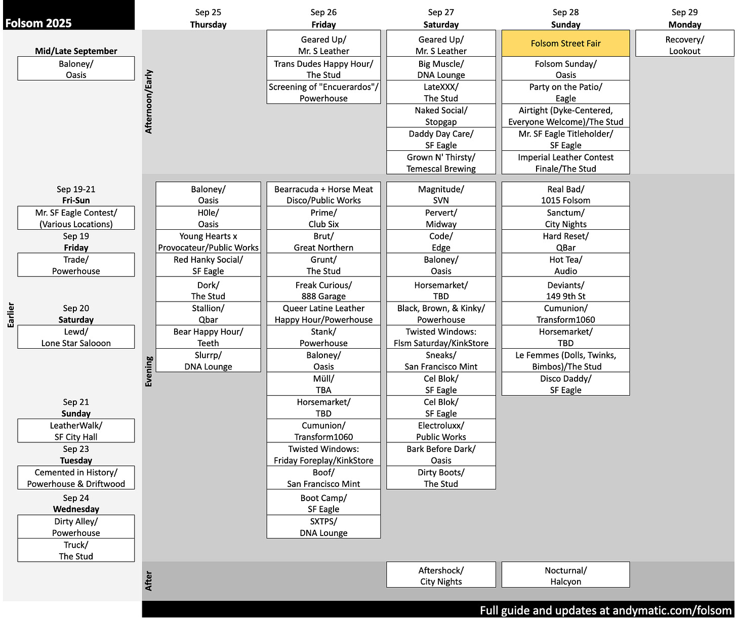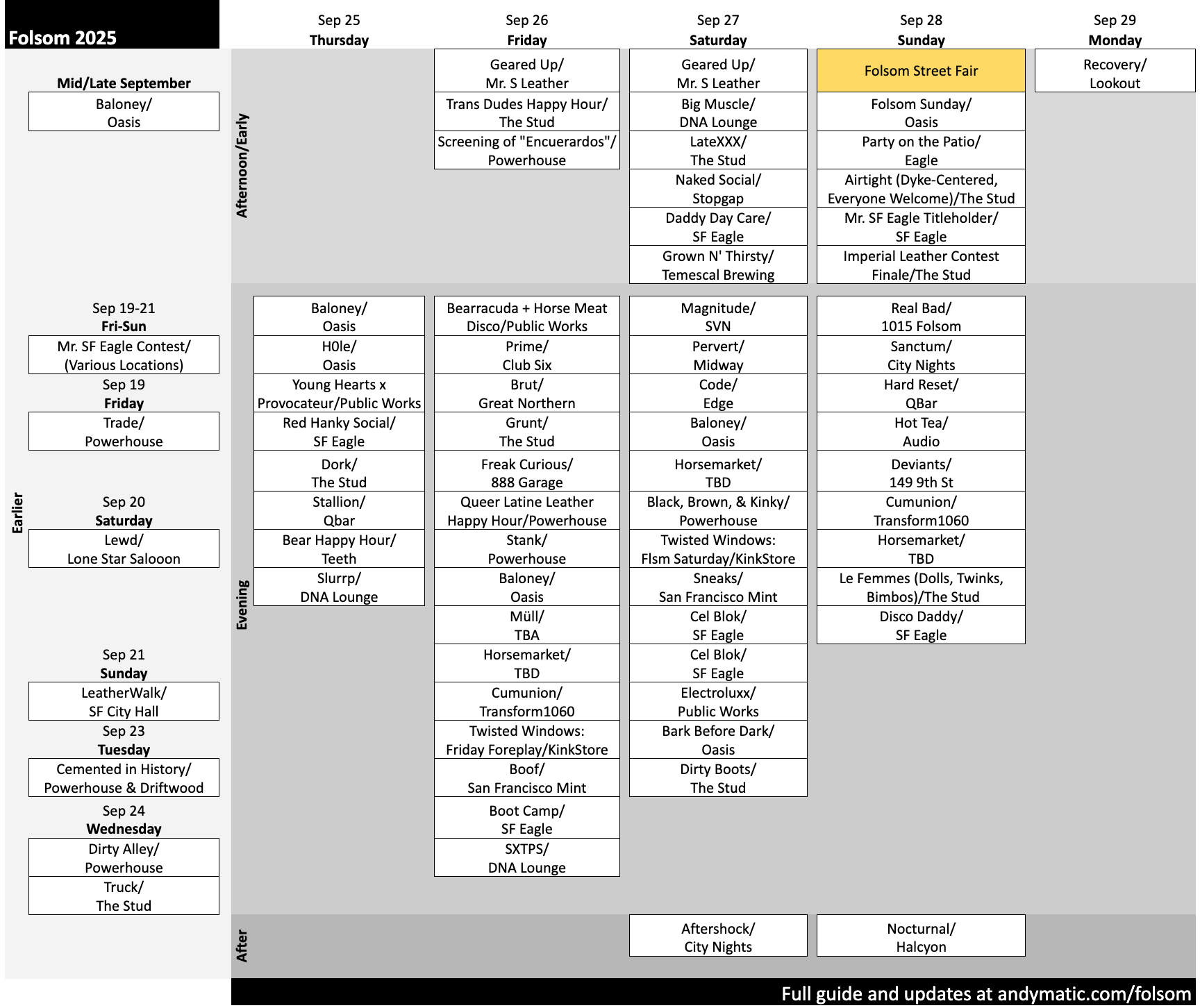 You’re right. There’s an entire leather community anchoring this whole thing. But this is a party guide.