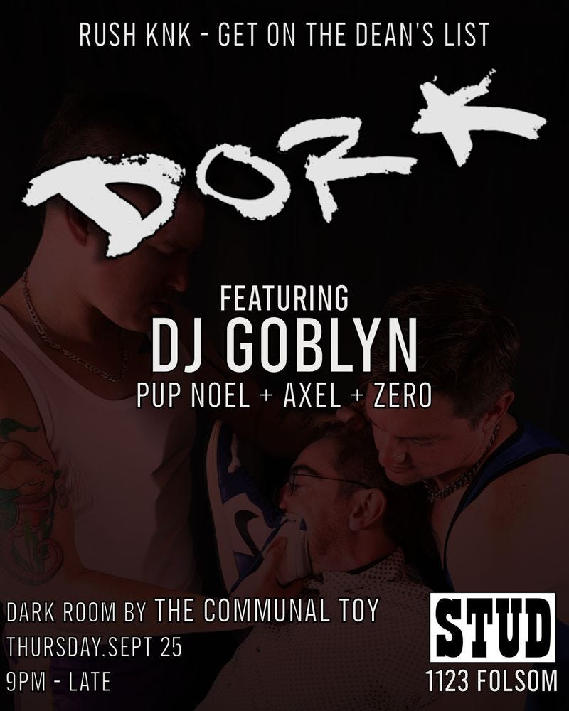 Tge KNK Fraternity is bringing you the Folsom edition for their Dork party filled with more frat-boy bullying, more wedgies, and more ways to let out your inner dirtbag. Rush KNK to see who is the biggest nerd of the night.